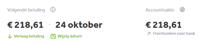 Maar voordat je een opnameopdracht geeft, scroll je naar de bovenkant van je dashboard om te controleren of er genoeg geld op je account staat voor je volgende aflossing, bijv.: